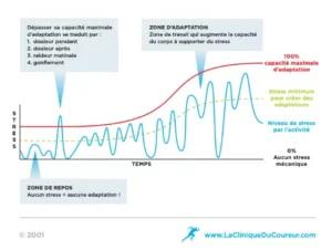 Tout l’enjeu est d’inciter à bouger au travail tout en étant progressif. Un minimum de stress est nécessaire pour donner au corps la possibilité de s’adapter à l’effort. Cette adaptation permet sa progression, mais gare au dépassement de son seuil de capacité d’adaptation maximale. Si l’on reste trop longtemps au-delà de ce que l’organisme peut encaisser, il risque la blessure.